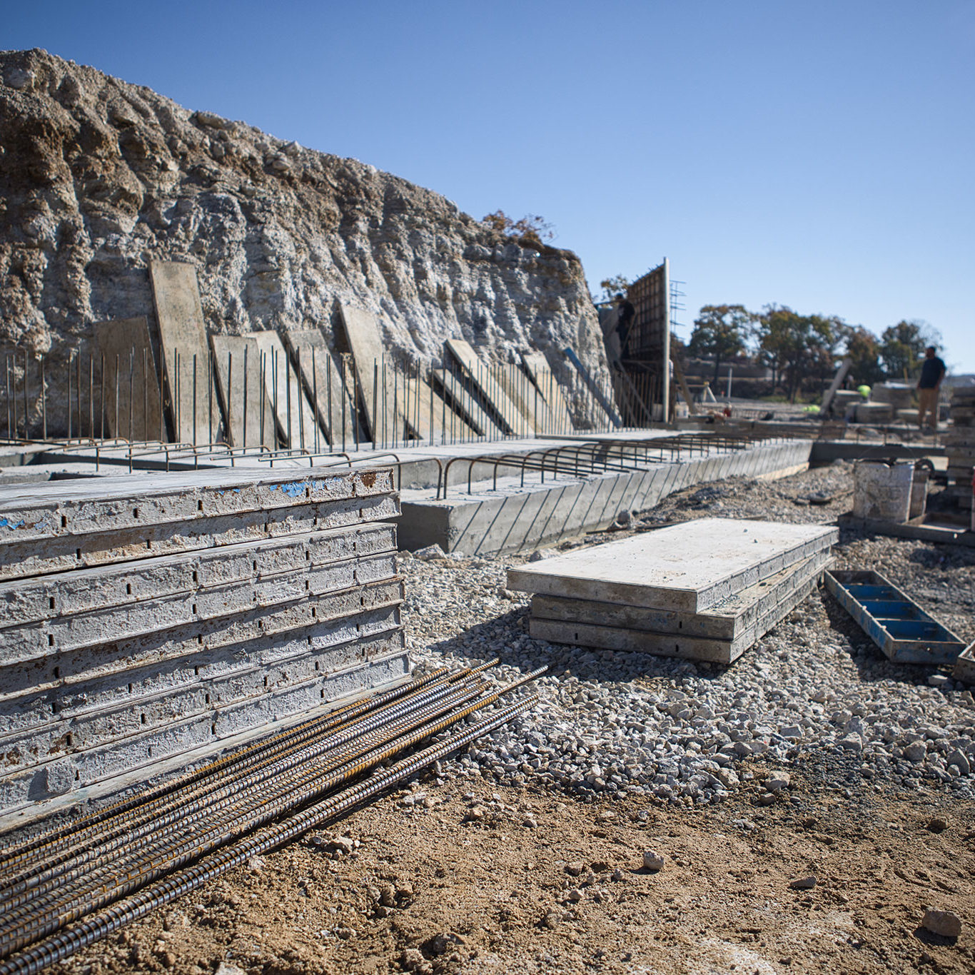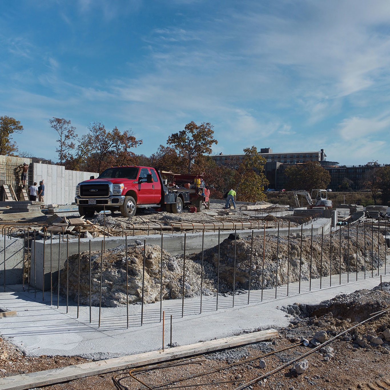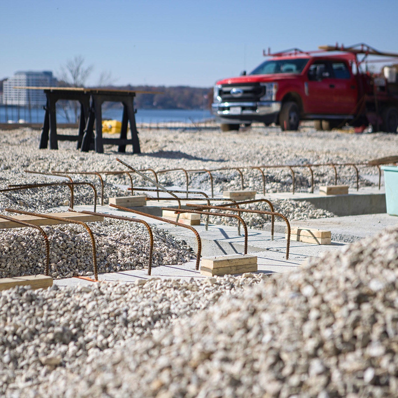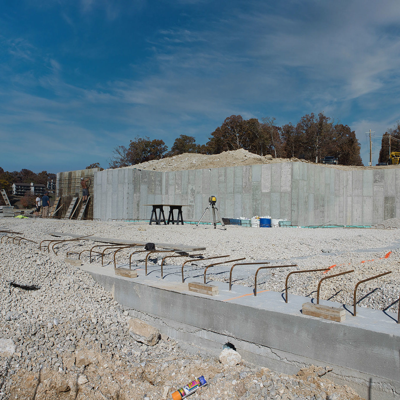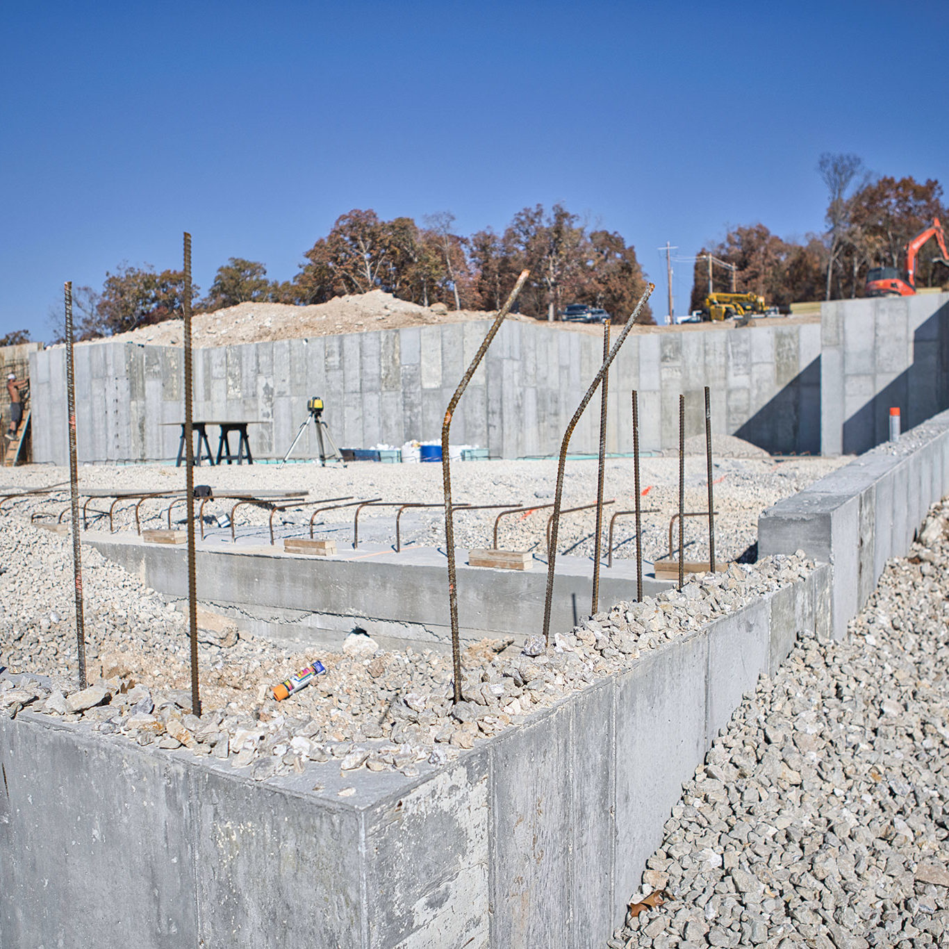 Over the past couple of weeks, Jim Clary’s crew have been diligently forming up our foundations and bending and setting tons (literally tons) of rebar. With two-thirds of the foundation complete, they are gearing up for another big pour later this week.